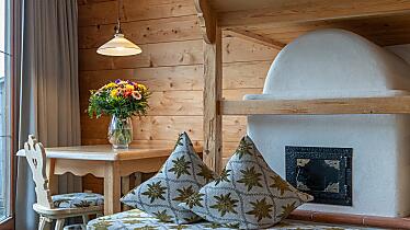 An immediate sense of well-being awaits you in the Telferweißen suite. The wood stove and a fantastic view create a romantic, evocative atmosphere.